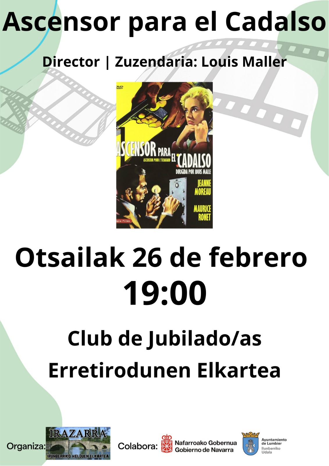 El pasado 26 de febrero a las 19h en el Club de Jubilados, 17 espectadores (9 hombres y 7 mujeres) pudimos disfrutar de un clásico del cine negro francés “Ascensor para el cadalso», dirigida por Louis Mallé y protagonizada por Jeanne Moreau, de 1958.