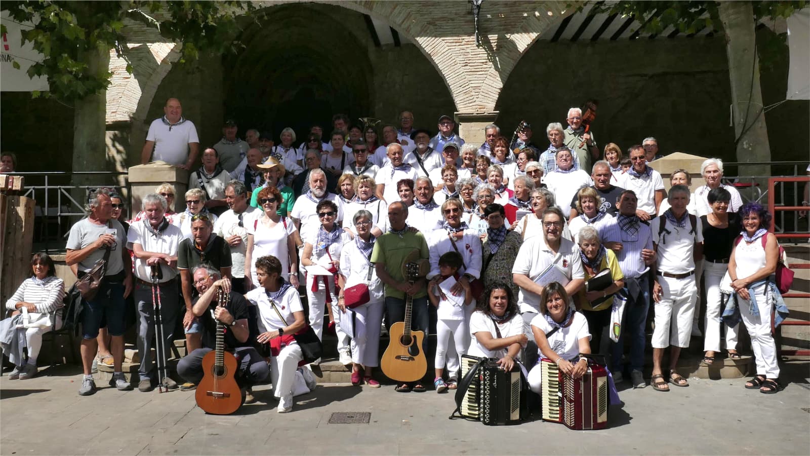 Hoy 1 de septiembre nuestro grupo de Kantuz de Irunberri-Lumbier ha llevado a cabo el recorrido habitual en las fiestas de San Ramón. Pero no hemos estado solos, un nutrido grupo de compañeros y compañeras de grupos de Kantuz de Aibar, Cáseda, Tafalla, Salazar, Leache, Barañain, Aoiz …. junto con nuestros ya compañeros y compañeras habituales en todas nuestras actuaciones: Jesús Ayesa y su hija Irune con su acordeón, el director del grupo de Tafalla Juan, Koldo Pastor, Mintxo, «Ningui», nuestras acordeonistas Marta y Laura, y algunos y algunas más que siempre nos acompañan y a los que tanto agradecemos su presencia. Y por supuesto nuestra directora Izaskun, quien hace posible con su esfuerzo y dedicación que este grupo siga creciendo.